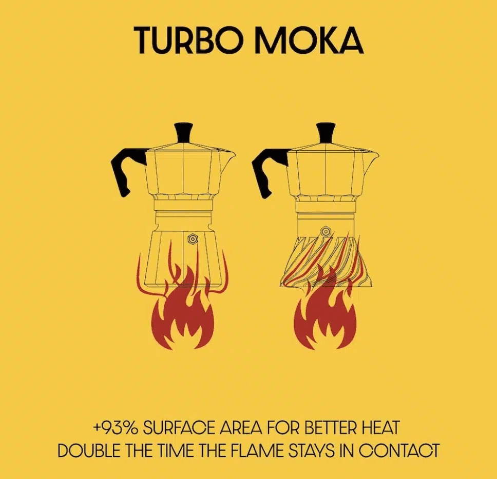 Turbo Moka от дизайнера Маттео Фронтини сочетает в себе итальянское мастерство, дизайн и инженерное искусство, представляя собой современную интерпретацию классической кофеварки мокко. Форма и ритуал приготовления кофе сохранены, но технические инновации позволяют значительно повысить эффективность приготовления.